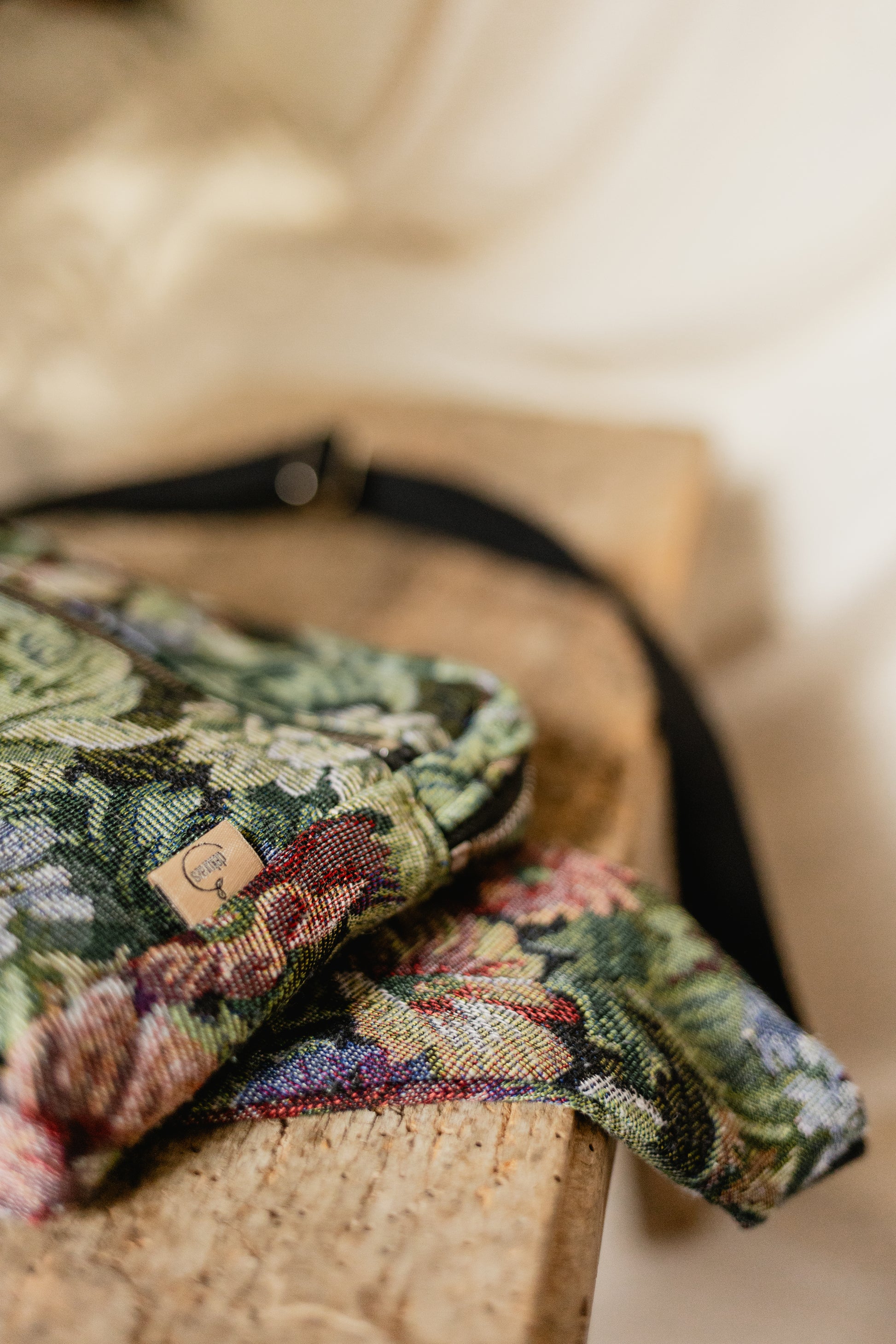 Övtáskáink gondosan válogatott, vintage textíliákból készülnek, így minden darab egyedi. Állítható pántjuk karabinerrel rögzíthető, így kabátra vagy vékonyabb ruházatra egyaránt kényelmesen viselhetők.